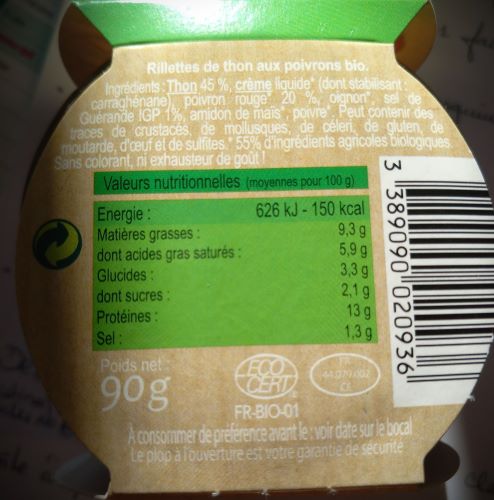 Allergènes : Traces possibles de crustacé, de mollusque, de céleri, de gluten, de moutarde, de sulfites et d'œuf
