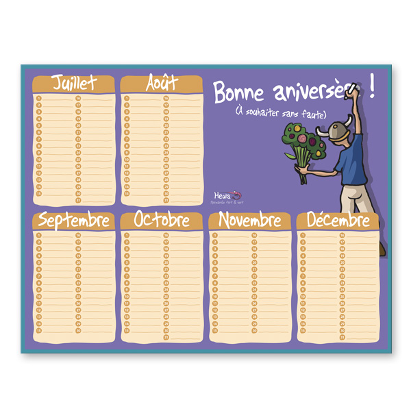 Pour ne plus oublier les anniversaires de vos 12 enfants, ou confondre celui de votre femme avec celui de votre maîtresse, Heula a repensé le calendrier perpétuel. Il fera un malheur dans vos toilettes ou dans votre bureau.