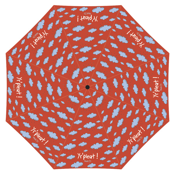 Parapluie pliant. 8 baleines en fibre+métal. Anti vent. Automatique à l'ouverture. Poignée plastique gommée noire. Manche en métal.